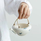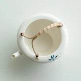 Dans cette délicate Théière Sans Couvercle en porcelaine, vous serez avisé de préparer un savoureux thé vert, blanc ou tout autre thé nécessitant une faible température d'infusion ou une conservation de la chaleur limitée. Un port agréable par l'anse en rotin, un versement harmonieux, une large ouverture permettant le déploiement des feuilles... de belles qualités pour une belle petite théière.