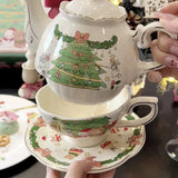 Pour déguster un thé de Noël au coin du feu, rien de tel qu'une Théière Sapin en version solitaire dite Tea for one. Ce service à thé individuel est composé d'une théière avec tasse et soucoupe assorties. De grande capacité, en céramique polyvalente, elle n'est pas seulement une théière décorative de Noël !