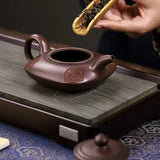 Les théières de Yixing sont fabriquées à la main et non tournées au tour de potier. L'argile dure est martelée avec un lourd maillet en bois pour former une plaque, le corps des théières est ensuite fabriqué selon trois techniques de base : moulé à la presse, rabattu, ou à la plaque. Des outils spécialisés en bois, bambou, métal et corne, créés à travers les siècles, sont utilisés au cours du processus de fabrication des théières de Yixing.