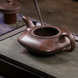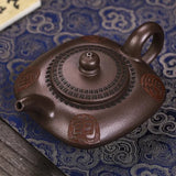 Quelle poésie se dégage de cette belle Théière en Terre Cuite de Yixing ! Des motifs finement gravés, une argile de grande qualité pour mémoriser et sublimer le thé que vous aurez choisi pour elle, une forme basse adaptée aux thés à grandes feuilles et faible parfum, voici quelques unes des nombreuses qualité de cette théière parfaitement adaptée à la préparation du thé au Gong Fu Cha.