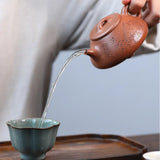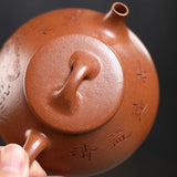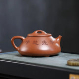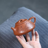 Pour mieux profiter des avantages de votre théière en argile, il est conseillé d'adapter sa forme au type de thé que vous souhaitez y infuser. Voici une magnifique Théière pour Thé Chinois artisanale finement gravée en terre de Yixing, de forme basse et ouverture étroite sur 3 pieds appelée "Shipiao", adaptée aux Thés Tie Guan Yin (Gun Yam, Iron Buddha, Oolong de Chine, Buddha of Mercy). N'hésitez pas à consulter notre article complet sur comment choisir sa théière en argile.