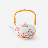 Théière Traditionnelle du Japon en porcelaine reprenant le motif du Chōjū-jinbutsu-giga, un rouleau peint japonais du temple Kozanji datant du XIIe siècle traduit littéralement par "Caricatures d'animaux". On aime son motif légendaire disponible en 2 coloris et son anse en bambou.