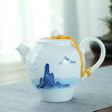Filtre : Porcelaine, boule trouée intégrée à la théière devant le bec verseur