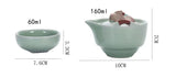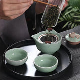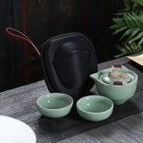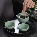 Cette petite Théière Vert d'Eau en céramique s'appelle un hohin. C'est une théière dépourvue de poignée qui se tient par les côtés et verse rapidement. Ce type de petite théière est très utilisée en Asie pour l'infusion du thé au Gong Fu Cha en infusions multiples. Avec ses 2 petites tasses pour composer un service à thé, vous pouvez choisir avec ou sans la housse de transport rigide pour l'emporter partout avec vous. Disponible en version émail lisse ou craquelé.