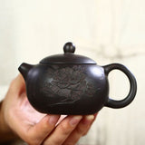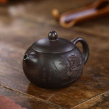 Voici une petite Théière Yixing pour préparer le thé selon le rituel chinois appelé Gong Fu Cha. Chaque goutte du précieux breuvage choisi pour elle sera apprécié dans cette théière à mémoire en argile gravée d'une magnifique pivoine. Une théière de qualité faite à la main avec la meilleure terre cuite de Chine.