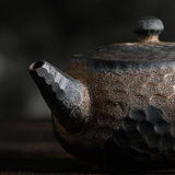Contrairement aux apparences, ce Kyusu Vintage est une théière parfaitement neuve. Le grès de cette théière japonaise à l'aspect martelé non émaillé à l'intérieur et sa couleur gris or lui donnent un style ancien très apprécié. Une théière en terre cuite sans mémoire pour y déguster toutes les sortes de thé sans mélange des saveurs. Bonne dégustation !