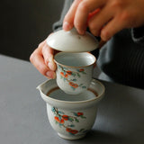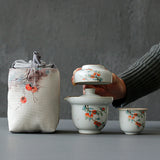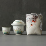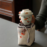 Le Gaiwan, célèbre petite théière chinoise, porte un autre nom : le Zhong, idéal pour découvrir le Thé en vrac. En voici un charmant modèle en céramique de qualité, très facile à utiliser pour boire tous vos thés favoris sans qu'il les garde en mémoire grâce à son bec verseur et aux trous situés sur le couvercle. Très pratique donc ! Il vous est proposé en service à thé nomade pour 2 personnes avec ses petites tasses assorties de formes différentes et son joli pochon en tissu. Au Japon, cette théière est connue sous le nom de Hohin Kyusu.