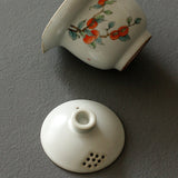 Filtre : céramique, à trou, intégré à la théière au niveau du couvercle