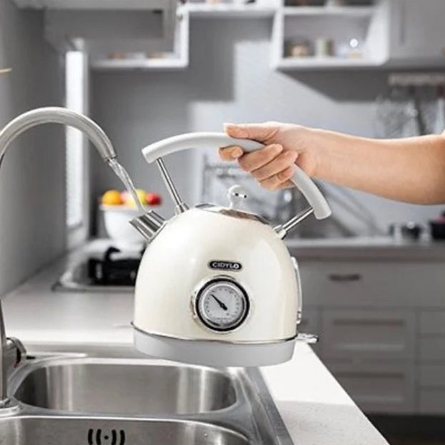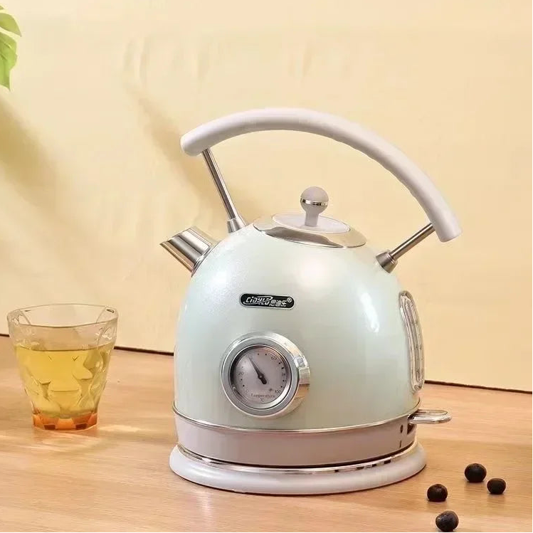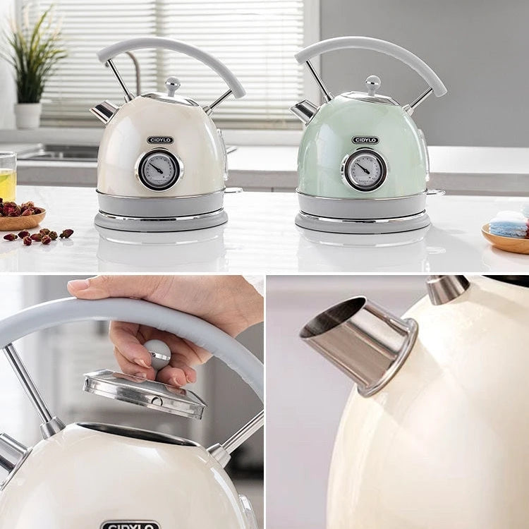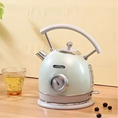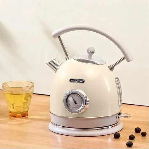 Pour donner à votre cuisine un design rétro chic tout en ayant une bouilloire électrique de qualité, optez pour cette Bouilloire avec contrôle de la température en inox. Elle vous permet de préparer tous les thés sans risquer de les abimer avec une eau trop chaude. Vitesse d'ébullition rapide, nuisance sonore minimale, poignée ergonomique isolée de la chaleur, grande capacité, 3 coloris au choix.