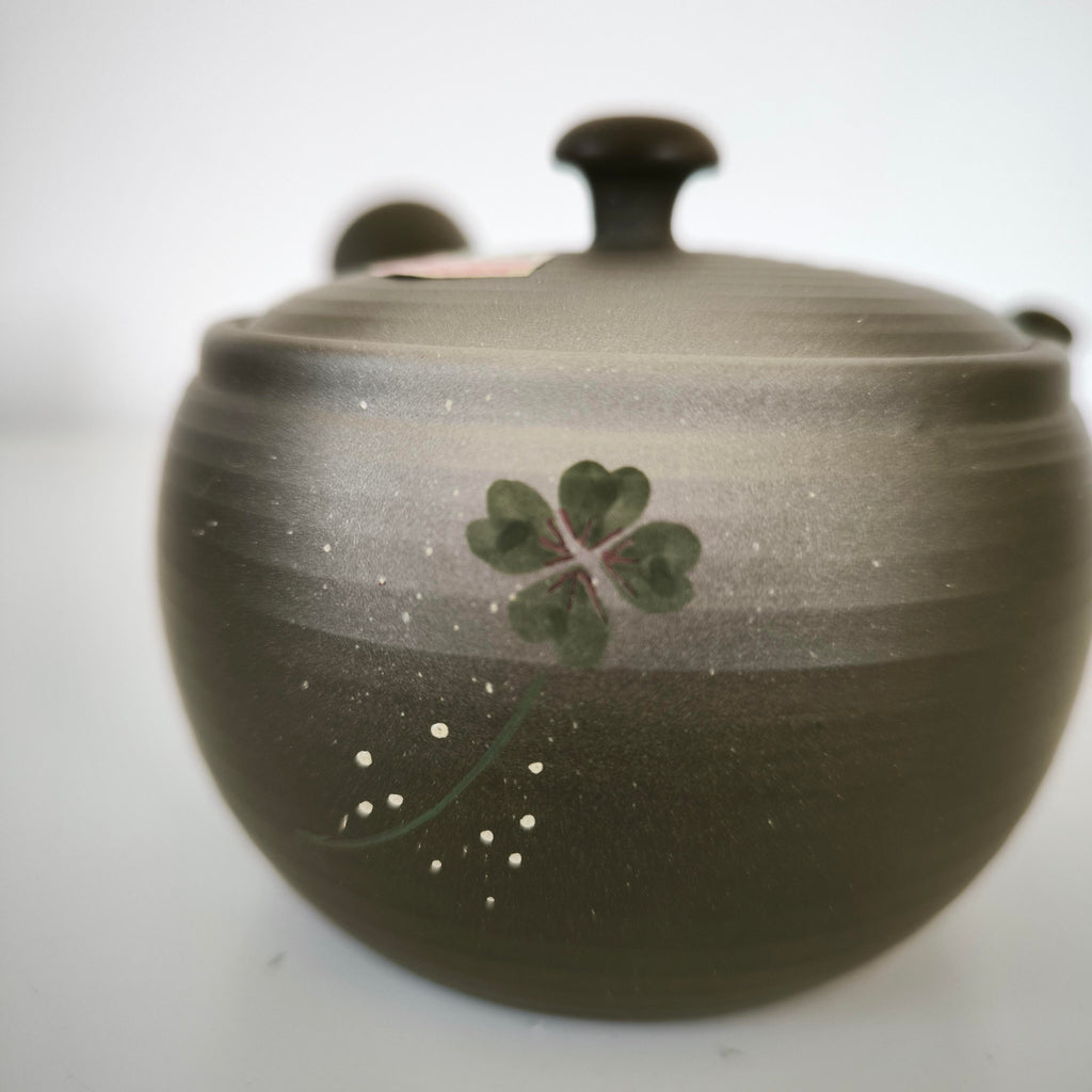 Choisir une Théière Tokoname, c'est avoir l'assurance de la qualité irréprochable d'une théière made in Japan. Ce magnifique kyusu noir décoré d'un trèfle à 4 feuilles est muni d'un grand filtre inox à maille très fine placé devant le bec verseur et tapissant le fond de la théière. Cette théière japonaise traditionnelle est l'outil parfait pour préparer tous vos thés verts, en particulier les Sencha fortement étuvés comme les thés Fukamushi (très poudreux).