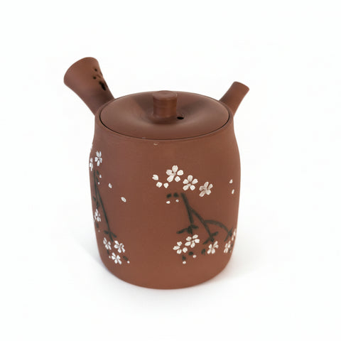 Cette petite œuvre d'art est une Théière Japonaise en Terre de Tokoname née des mains expertes de Maître Seiho Tsuzuki, potier japonais de renom qui s’attache à concevoir des outils d’une grande qualité, pensés pour rester accessibles aux amateurs de thé, même sans budget démesuré. Une beauté rouge décorée de petites fleurs blanches, poétique et parfaitement fonctionnelle, tant au niveau de l'équilibre que du versement.