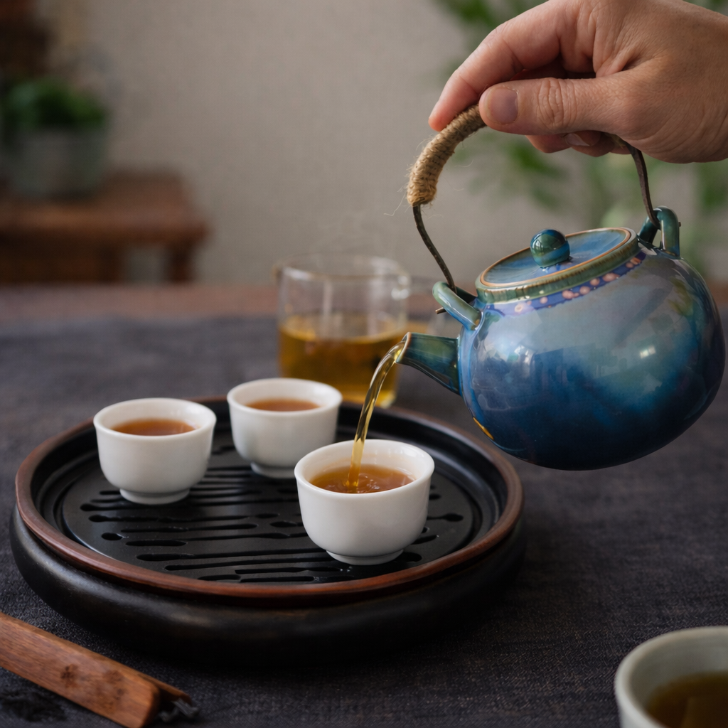 Elle est belle, elle est artisanale, elle est polyvalente, notre petite Théière en Porcelaine Chinoise de Jingdezhen se pare d'une belle couleur bleue et verte pour infuser tous les types de thé. Elle s'utilise en théière individuelle avec une tasse de 300ml ou en théière pour gong fu cha (infusions multiples) pour plusieurs petites tasses asiatiques.