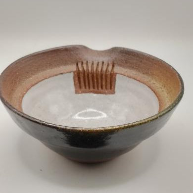 Couleur : Gris-noir et ocre ; intérieur émaillé gris très pâle