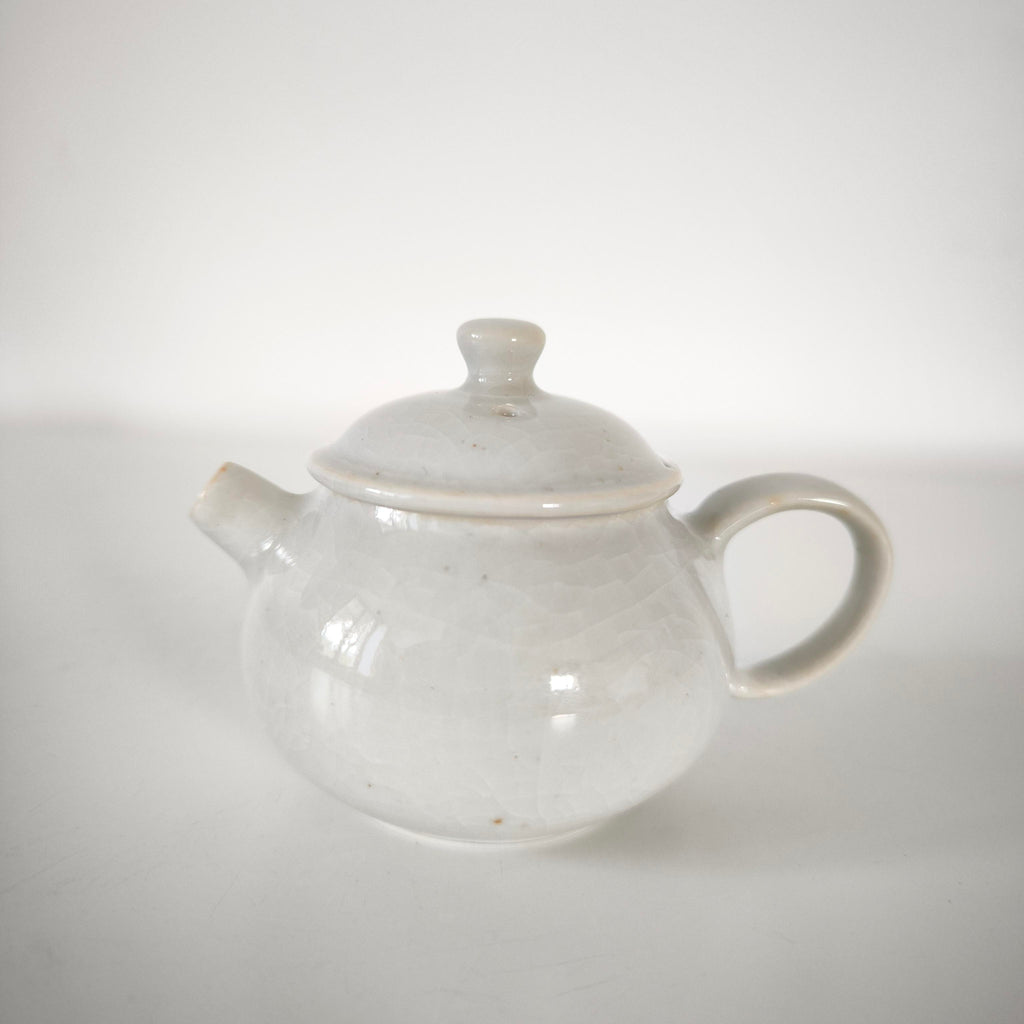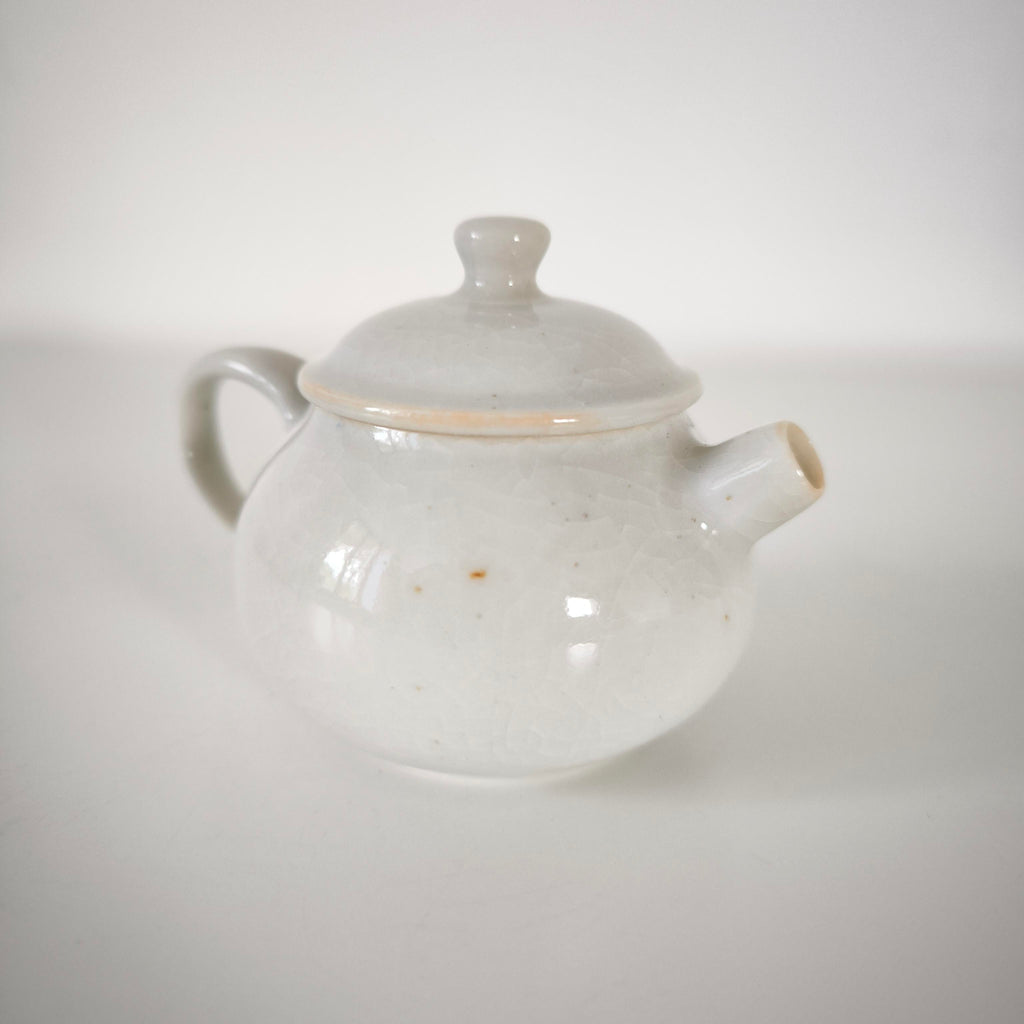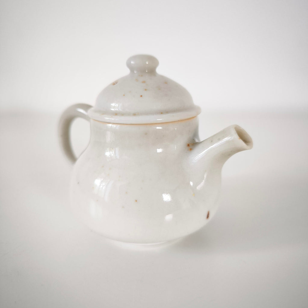 Cette très petite Théière en Porcelaine Artisanale a été fabriquée à la main par l'artiste Inge Nielsen en Belgique. Sa porcelaine couverte d'émail Shino lui donne une couleur blanche unique. Cette théière, disponible en forme poire ou pomme de très petites capacités, est travaillée dans les moindres détails, du bec qui verse parfaitement sans goutte au couvercle ajusté en passant par le filtre boule, pour des dégustations de thé en infusion multiple sereines et réussies. Un vrai bijou de porcelaine.