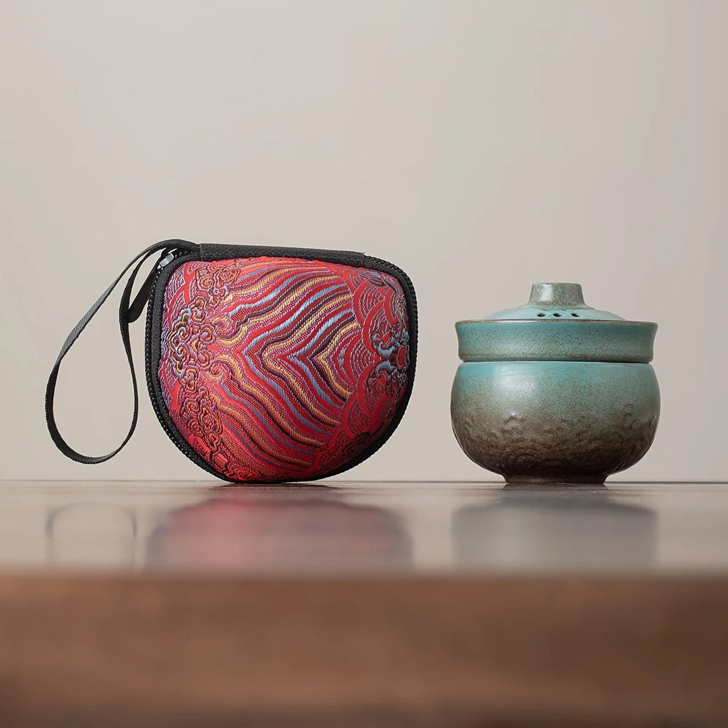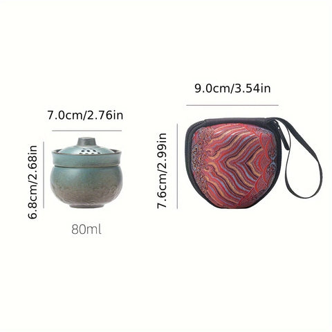 Il est pratique, nomade et pas cher ce petit Service à Thé Chinois pour 1 personne. La petite théière s'imbrique dans la tasse et l'ensemble est protégé dans un petit étui rigide. La théière et sa tasse sont en grès émaillé, une céramique neutre pour partir à la découverte des thés avec le même outil. Un service à thé individuel de poche à emporter dans vos pérégrinations, disponible en 2 coloris. Bon voyage !