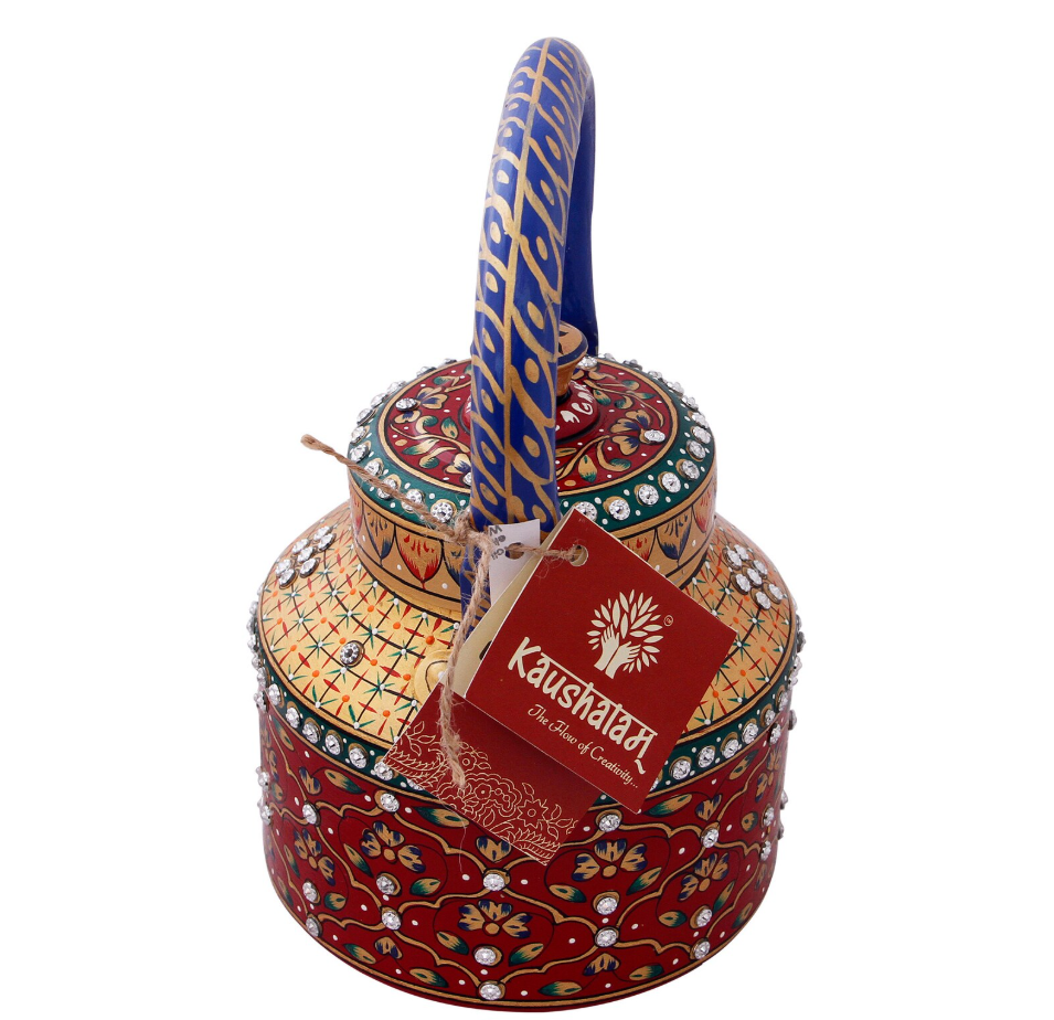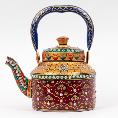 Cette sublissime Théière arrive tout droit d'Inde pour rendre royal chacun de vos moments de thé. Minutieusement peinte à la main de motifs de l'art moghol, ornée de petits strass, c'est un objet d'art en plus d'un outil de grande capacité pour servir le thé. Disponible en 2 volumes.