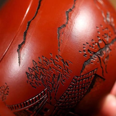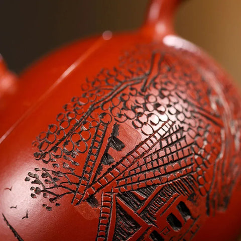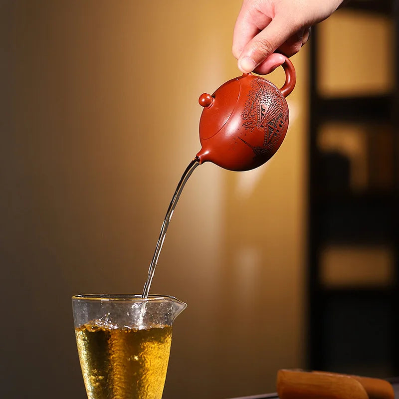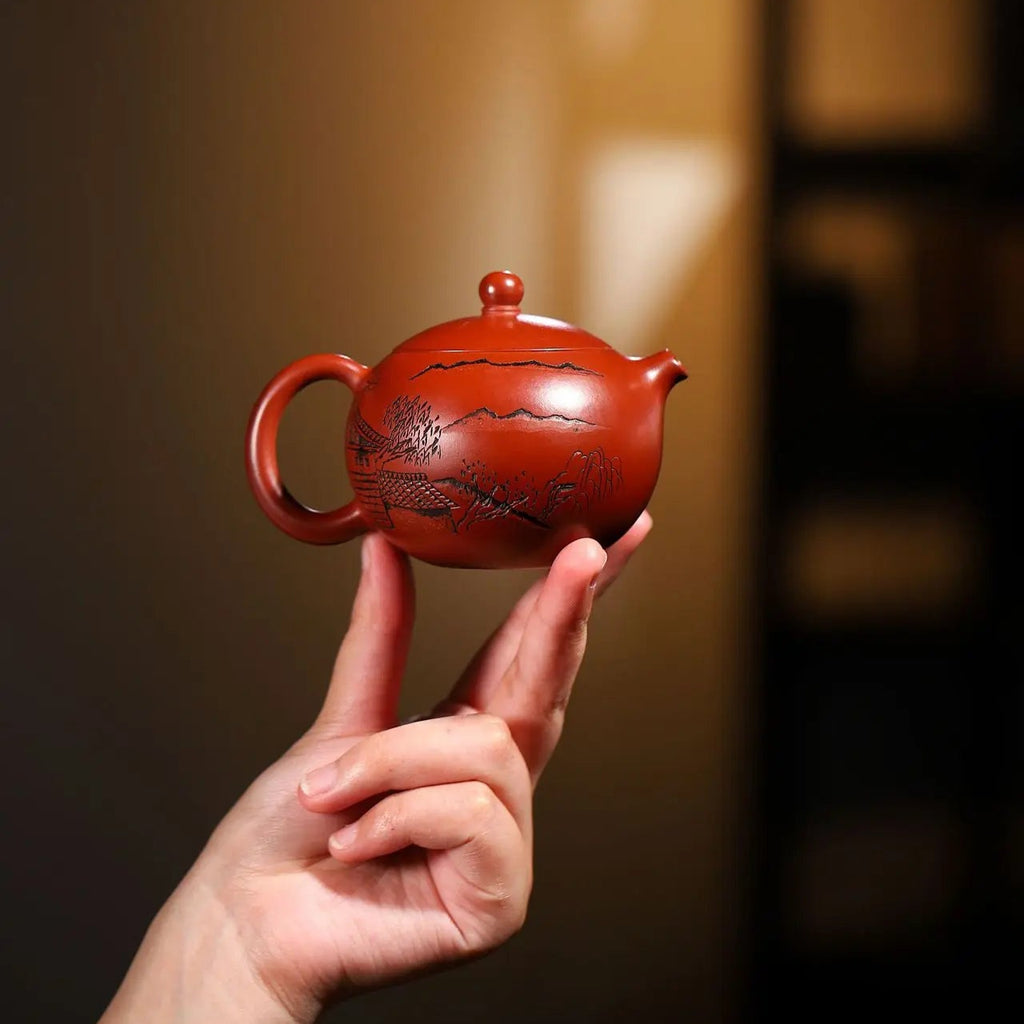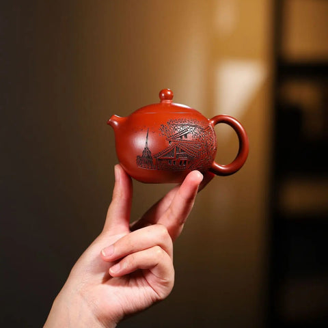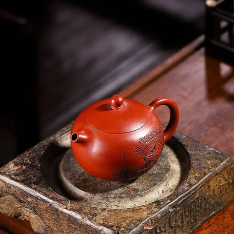 Voici LA Théière Yixing pour Gong Fu Cha, la fameuse théière à mémoire pour la cérémonie du thé chinoise. Cette magnifique petite théière Xi Shi en argile de Yixing de 100ml est ornée d'un paysage traditionnel finement gravé. Son filtre boule devant le bec verseur permet d'optimiser la surface de filtration pour ne laisser passer que le meilleur du thé que vous aurez choisi de lui dédier. Vous allez l'adorer.