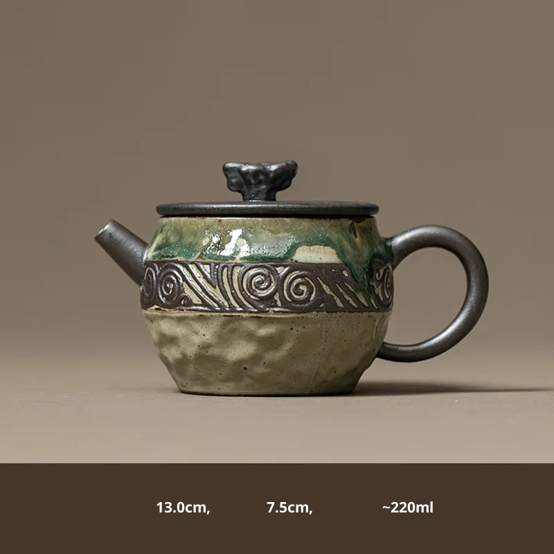Cette petite Théière de Style Ancien est une théière chinoise neuve possédant le charme de l'ancien, déclinée en plusieurs variantes de style japonais différents selon la présence et la position de la poignée. Elle est adaptée à la dégustation de thés variés au Gong Fu Cha (infusions répétées) grâce à son grès sans mémoire. Sa capacité comprise entre 150 et 250ml selon le modèle permet de servir une tasse occidentale ou plusieurs petites tasses asiatiques