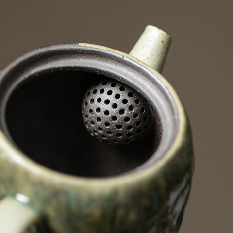 Filtre : en grès, boule multi-trous intégrée devant le bec verseur