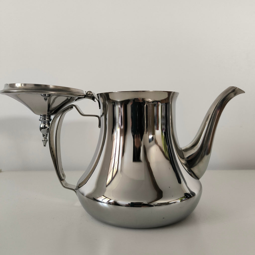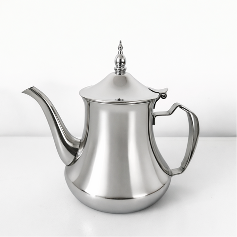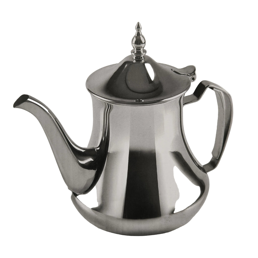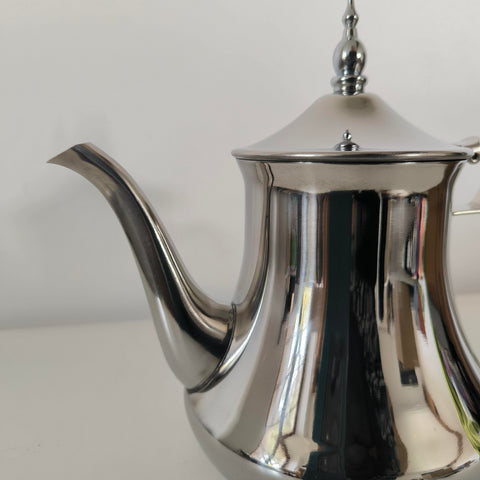Ce modèle de Bouilloire Marocaine est une théière arabe marocaine de conception traditionnelle en acier inoxydable. Elle convient aux cuisinières électriques, céramiques et à gaz. Sentez-vous déjà l'odeur du thé à la menthe ? Nous oui....
