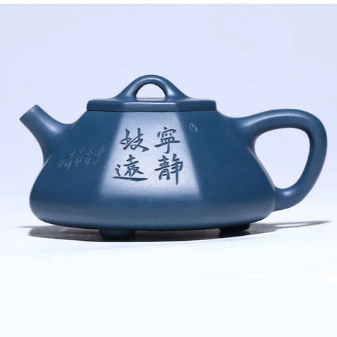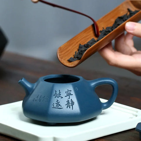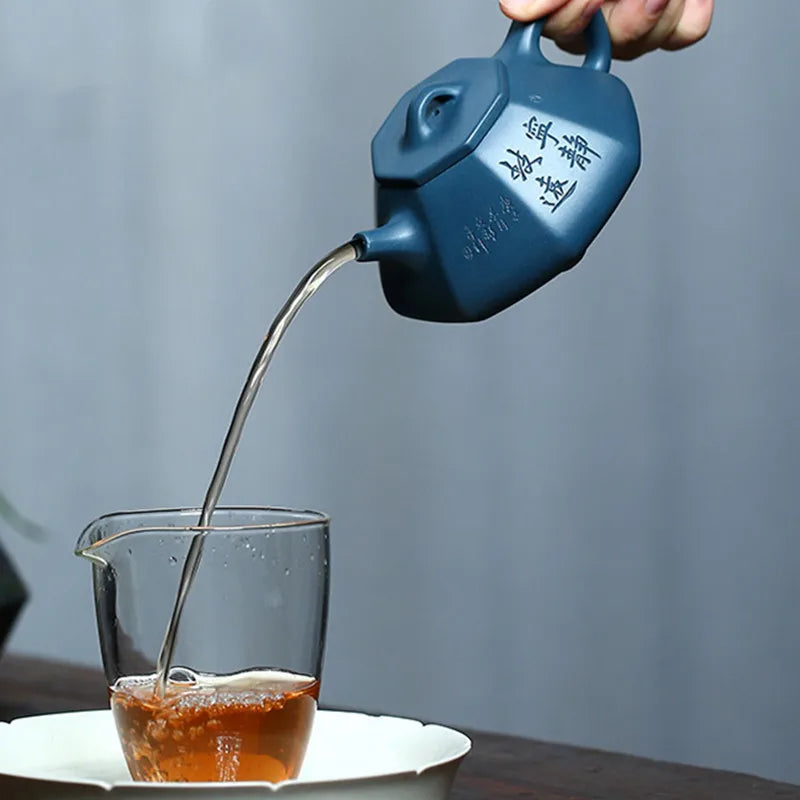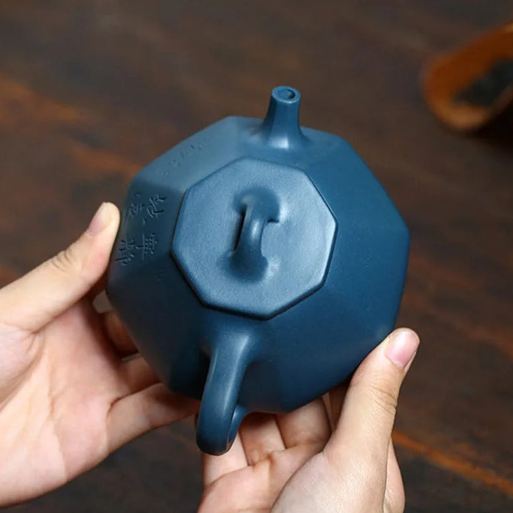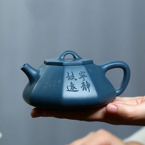 Nous aimons chez cette petite Théière Hexagonale chinoise son design original, son argile de Yixing bleue dite à mémoire et son excellent rapport qualité prix. C'est une théière adaptée à la dégustation du thé au Gong Fu Cha, c'est à dire en infusions répétées et concentrées dans une théière de petite capacité.