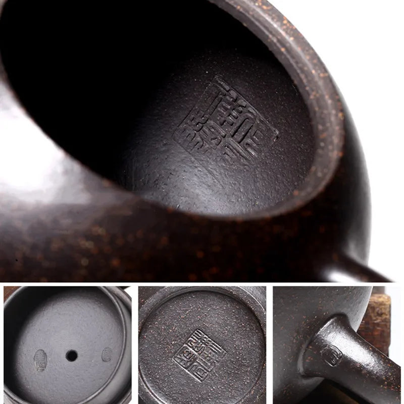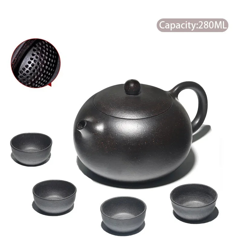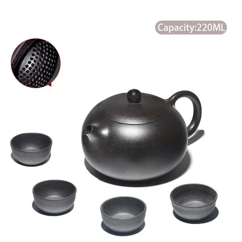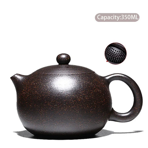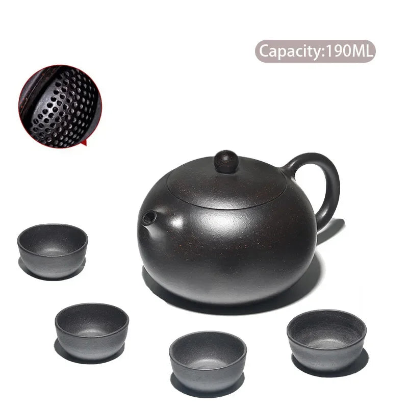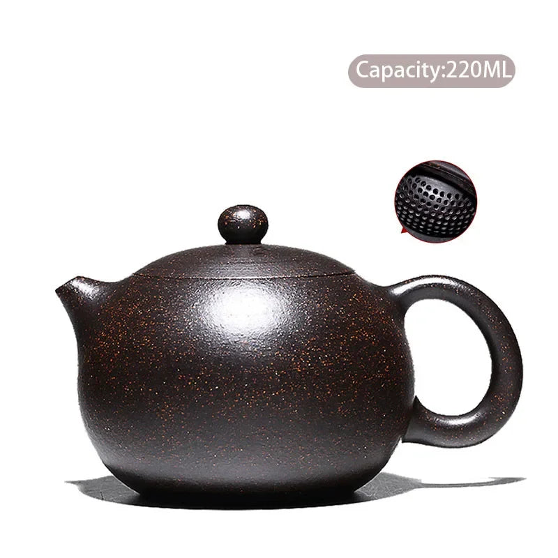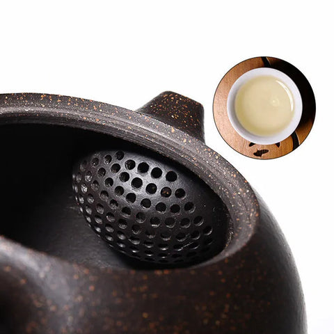 Filtre : Argile, type boule multi-trous pour optimiser la surface de filtration, intégré à la théière devant le bec verseur