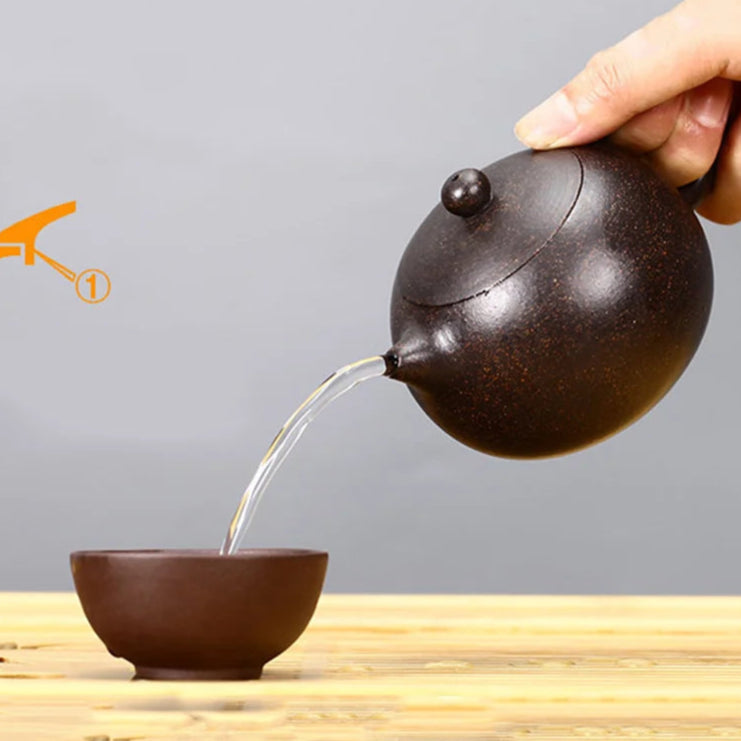 Une terre légèrement poreuse qui mémorise les arômes du thé choisi pour elle, une forme simple dite Xi Shi, un bel équilibre, un versement harmonieux, telles sont les principales qualités de ces Théières de Yixing destinées à la dégustation du thé au Gong Fu Cha. Plusieurs modèles de contenances variés avec petites tasses assorties en option !