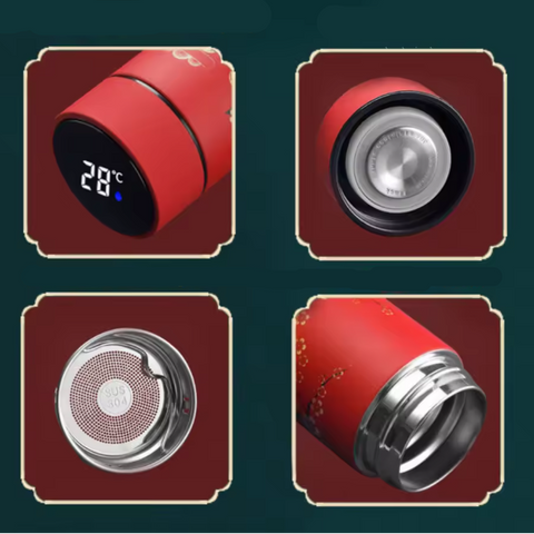 Un incontournable de toutes vos sorties notre Bouteille Thermos Isotherme avec Affichage de Température. D'une part car elle est absolument magnifique et que, comme nous, vous ne saurez quel motif choisir. D'autre part car elle est légère, étanche, solide, avec double paroi inox sans revêtement intérieur et munie d'un petit filtre barrière amovible (qui n'est pas un panier infuseur). Enfin parce que dans son couvercle est niché un détecteur de température pour connaître à tout moment le degré de chaleur de son contenu avec affichage digital de la température. C'est beau la technologie ! Cette théière thermos ne vous quittera plus.