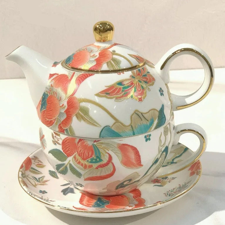 Belle et raffinée, cette Jolie Théière en Porcelaine est un service à thé individuel appelé tea for one en Angleterre ou théière solitaire ou égoïste en France. L'ensemble à thé est composé de la théière, la tasse et la soucoupe. La céramique neutre et sans mémoire autorise tous les types d'infusions sans mélange des saveur.