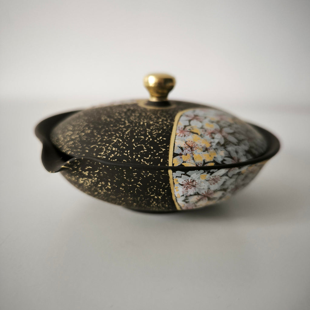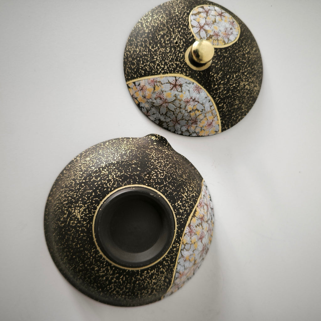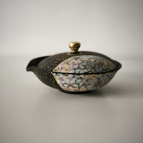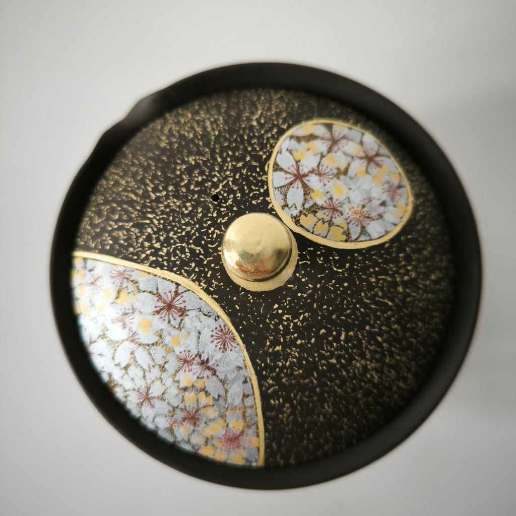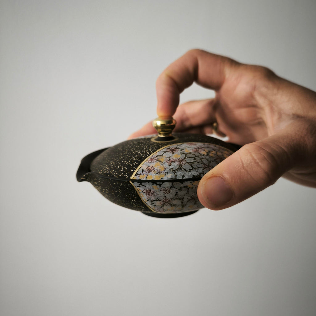 Chaque exemplaire de ce superbe shiboridashi de Tokoname a été façonné à la main et minutieusement décoré d'un motif floral doré à l'or fin par Maître Hirotaka Umehara. Cette théière japonaise de très petite capacité est un Kyusu pour Thé Vert prestigieux et puissant, tel que le sencha, le tamaryokucha, le kamairicha et bien sûr le fameux thé d'ombre, le gyokuro.