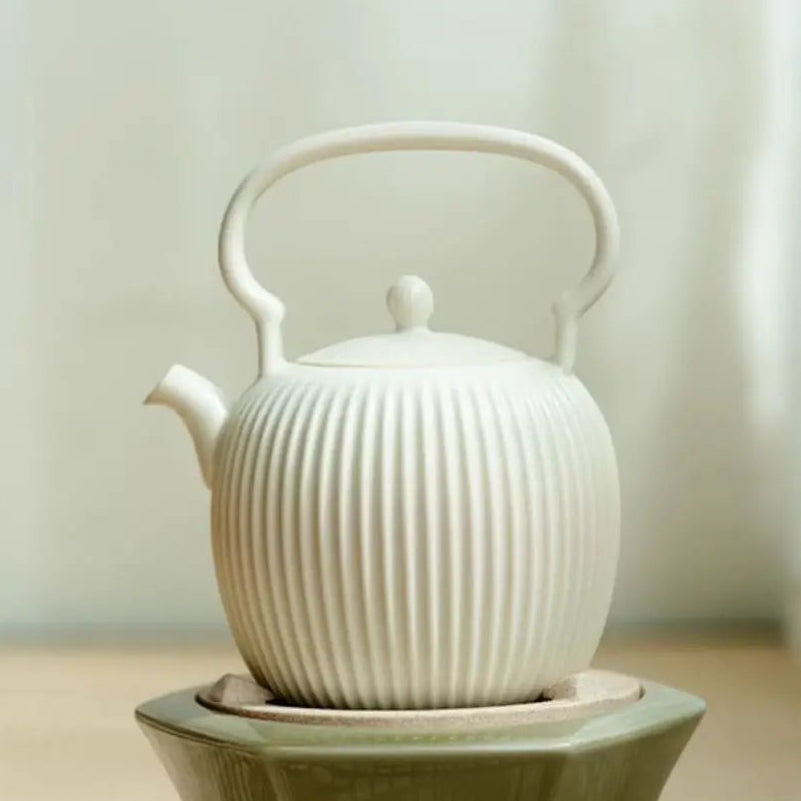 Amateur de design, voici une petite Théière Blanche Moderne qui ne pourra que vous séduire. En céramique d'une belle couleur blanc crème neutre et sans mémoire, munie d'une filtre boule multi-trous intégré devant le bec, elle permet aux feuilles de thé de profiter de l'ensemble du corps de la théière pour se déployer. En grès résistant cuit à très haute température, elle peut servir de bouilloire sur feu doux. De délicieux moments en perspective...