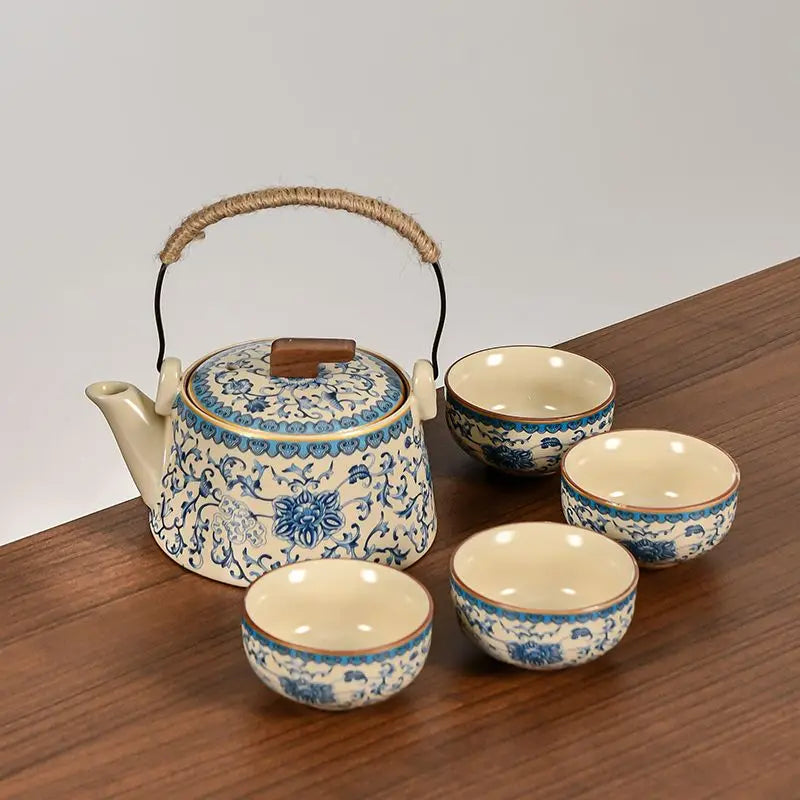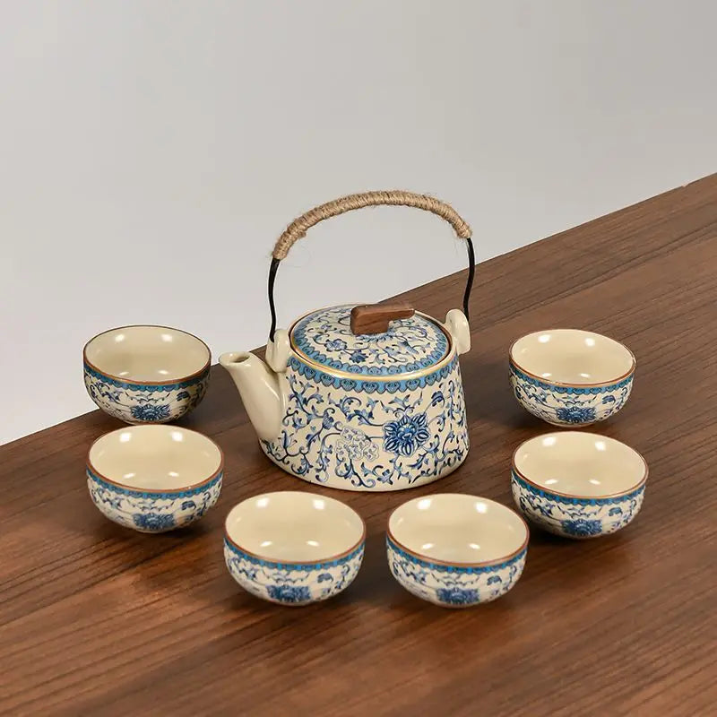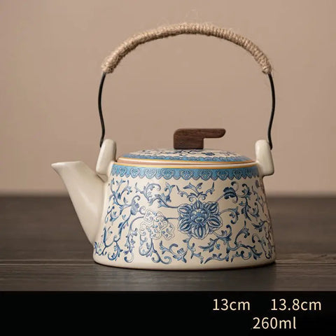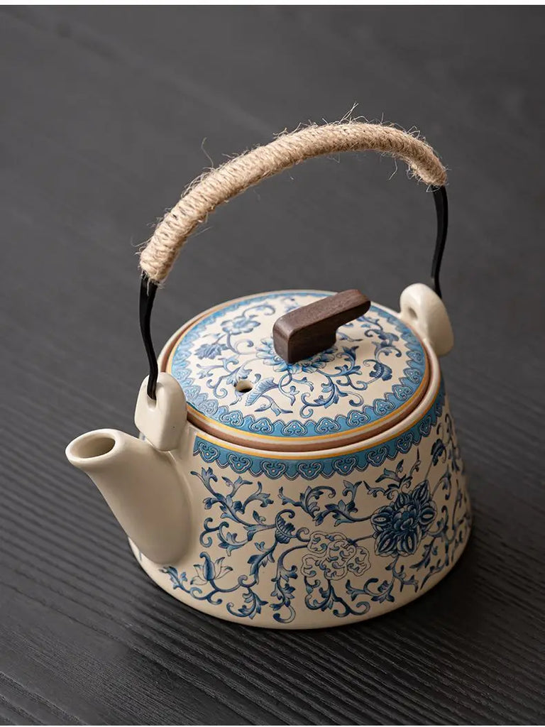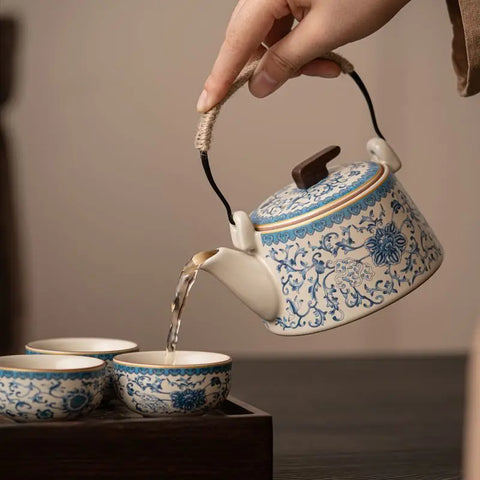 Cette petite Théière Rétro est en céramique neutre et sans mémoire, munie d'une anse en laiton isolée par une cordelette et décorée d'un beau motif fleuri. La théière est proposée seule ou accompagnée de ses petites tasses assorties (2, 4 ou 6). Thé vert, thé noir, earl grey, oolong, vous pourrez tout y déguster sans mélange des saveurs. Et lorsque vous ne l'utiliserez pas, pour joindre l'utile à l'agréable, elle sera un magnifique petit objet de décoration.