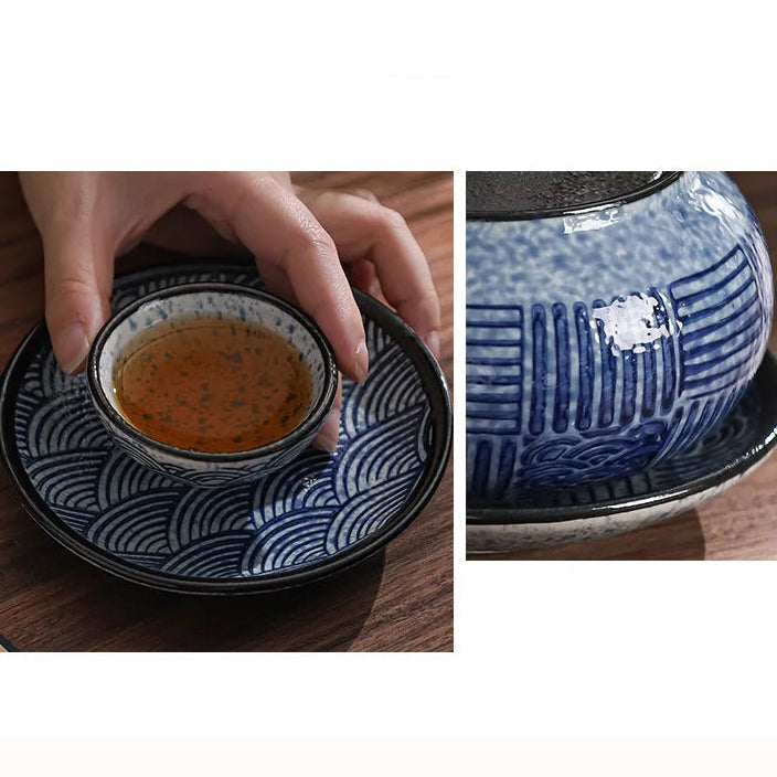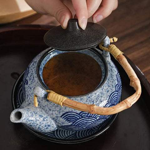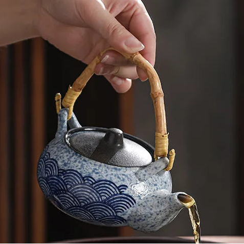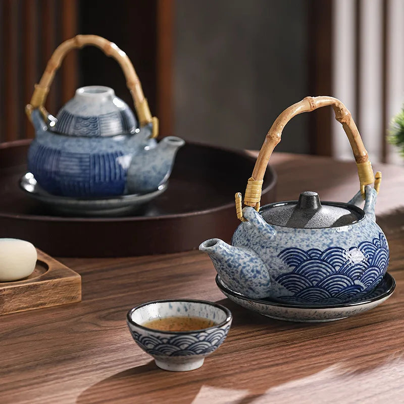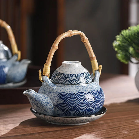 Un peu de délicatesse et de poésie à l'heure du thé avec cette petite Théière Vague. Il s'agit d'un Uwade Kyusu, appelé aussi Dobin, une théière japonaise en céramique munie d'une anse située au-dessus. Elle est proposée en service à thé individuel avec sa petite tasse et sa soucoupe assorties. En dégustant tous vos thés favoris grâce à sa céramique sans mémoire, évadez-vous au pays du Soleil levant et laissez-vous bercer par les flots...