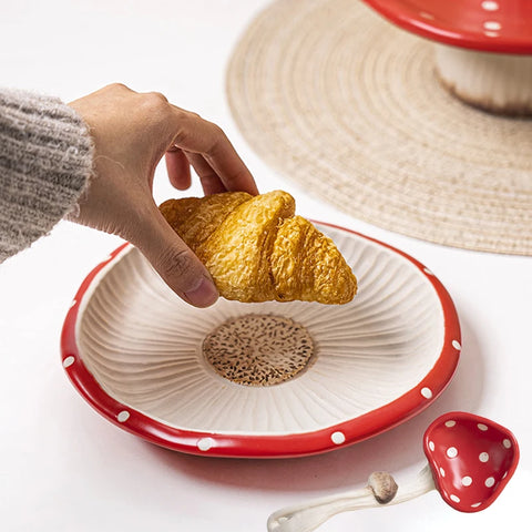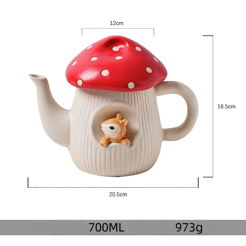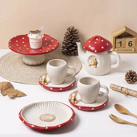 On atteint les sommets de la mignonnerie avec cette Théière Champignon et écureuil en céramique, accompagnée si vous le souhaitez des autres éléments du service à thé complet à choisir séparément : plateau, assiette, mug, tasse ou encore cuillère à thé assortis.