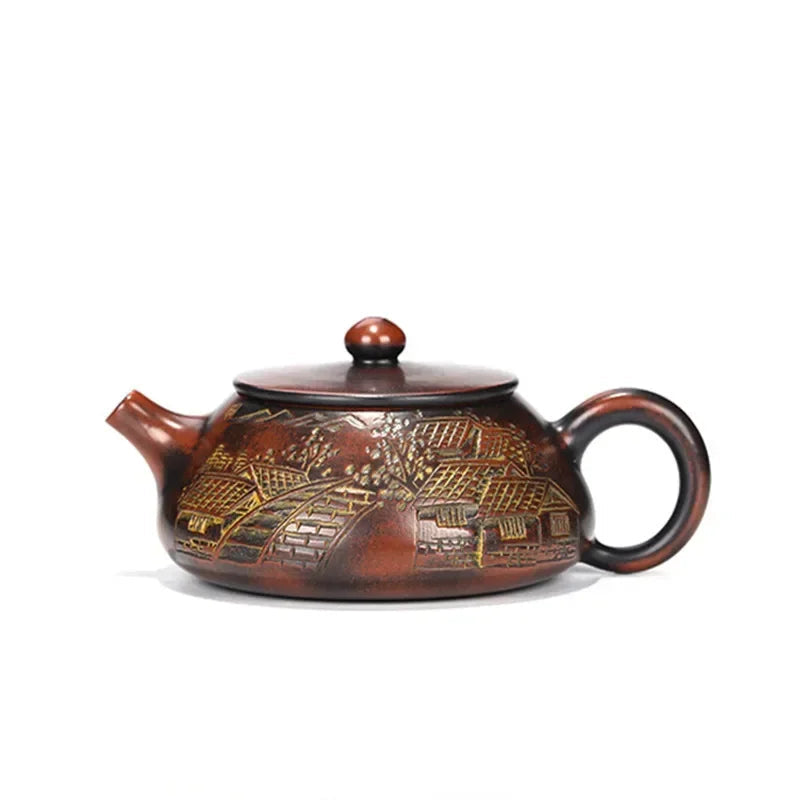 Découvrez l’élégance sobre et la tradition millénaire d'une Théière en argile de Jianshui. Façonnée à la main dans la province du Yunnan, cette théière est réalisée en argile « Zitao » et polie à la pierre pour obtenir une finition lisse et légèrement brillante, sans émail. Sa porosité naturelle sublime les arômes des thés noirs, sombres (pu-erh) ou oolong, tout en développant une belle patine au fil des infusions. Plus vous l’utilisez, plus elle révèle la richesse de votre thé et devient unique.